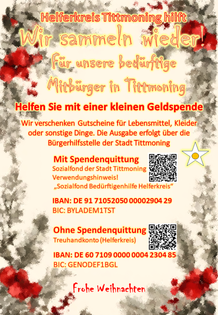 Hier hoffen wir auch auf Geldspenden von den Betrieben in Tittmoning und Fridolfing, so der Helferkreis Tittmoning-hilft.